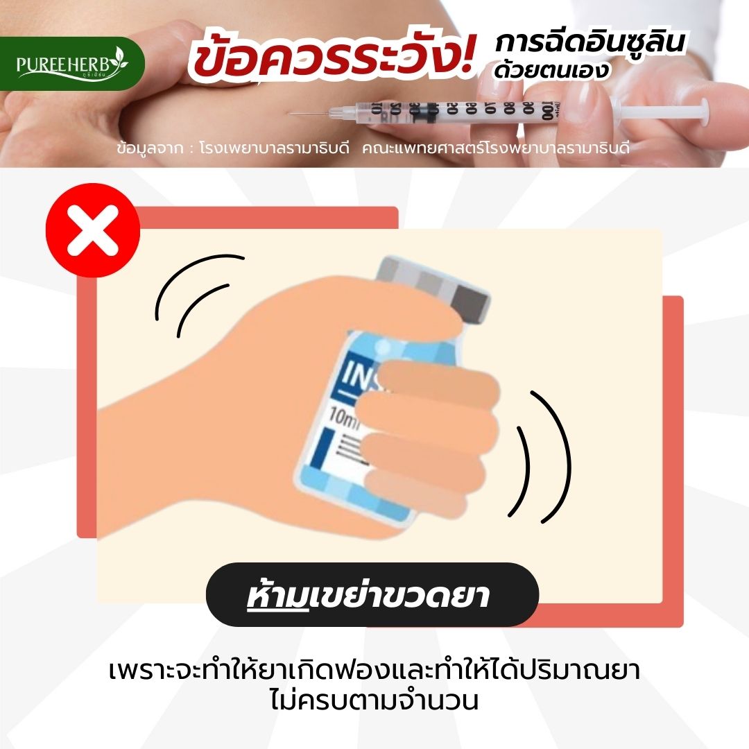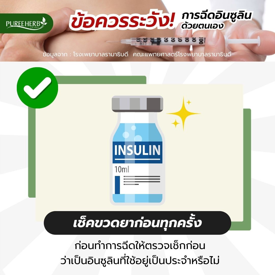 ก่อนทำการฉีดให้ตรวจเช็กก่อนว่าเป็นอินซูลินที่ใช้อยู่เป็นประจำหรือไม่